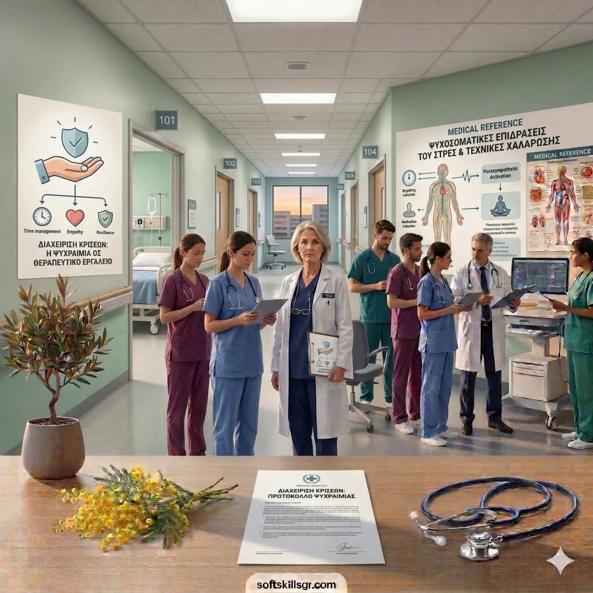 Τεχνική Αποκλιμάκωσης (De-escalation): Όταν ένας συνοδός φωνάζει, η φυσική αντίδραση είναι η άμυνα. Το soft skill της Αυτοκυριαρχίας σάς διδάσκει το αντίθετο: χαμηλώστε τον τόνο της φωνής σας, διατηρήστε ανοιχτή στάση σώματος και χρησιμοποιήστε τη φράση «Βλέπω ότι είστε πολύ ανήσυχος για τον άνθρωπό σας. Πείτε μου τι ακριβώς συνέβη για να σας βοηθήσω».