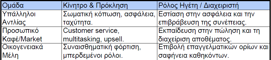 Δίκαιη Αντιμετώπιση: Στα πρατήρια των ομίλων, ο διαχειριστής πρέπει να είναι η «γέφυρα». Πρέπει να προστατεύει την ομάδα του από παράλογες απαιτήσεις της διοίκησης και ταυτόχρονα να διασφαλίζει ότι τα εταιρικά targets επιτυγχάνονται.