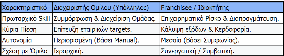 Σύγκριση Ρόλων: Διαχειριστής Ομίλου vs. Ανεξάρτητος Franchisee